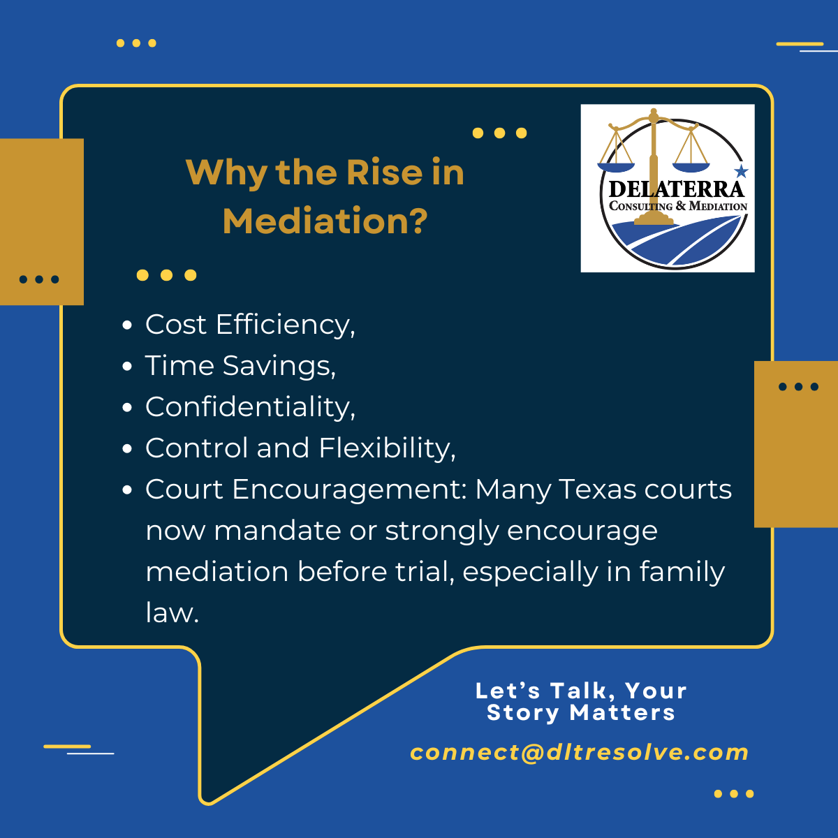 Many Texas courts now require or strongly encourage mediation before trial, especially in family law and employment disputes.